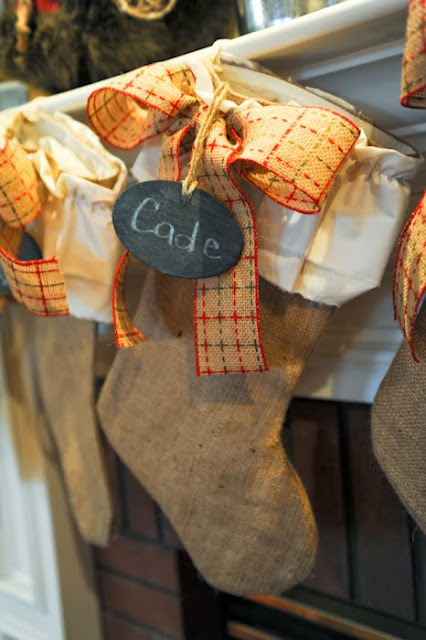 One of my favorite things about our new house is our mantel and fireplace! A few weeks ago, we lit that baby right up, sat back with huge grins and realized that it was our first "house-fire" in 15 years of marriage! I love having a mantel to decorate with each season! This year, I wanted some froo-froo burlap stockings cause I am a girl among zero girls. Sometimes a momma just needs a little frill! I knew just the person to call!